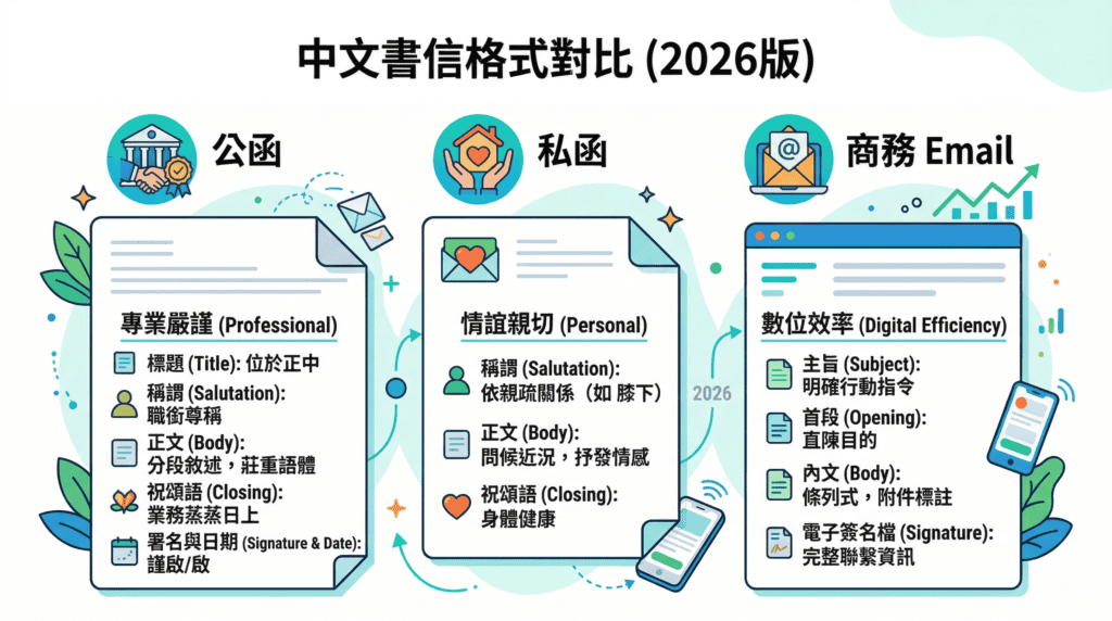中文書信格式全攻略:公函、私函、Email 格式範本與寫作禮儀