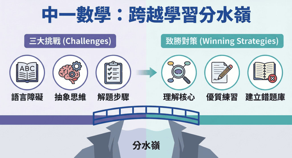 升上中學是學生學習生涯的一個重要分水嶺,特別是在 中一數學 這一科,許多學生會感到吃力。從中文教學轉為英文教學(EMI)的適應期,加上代數思維的抽象化,都讓家長和學生感到焦慮。