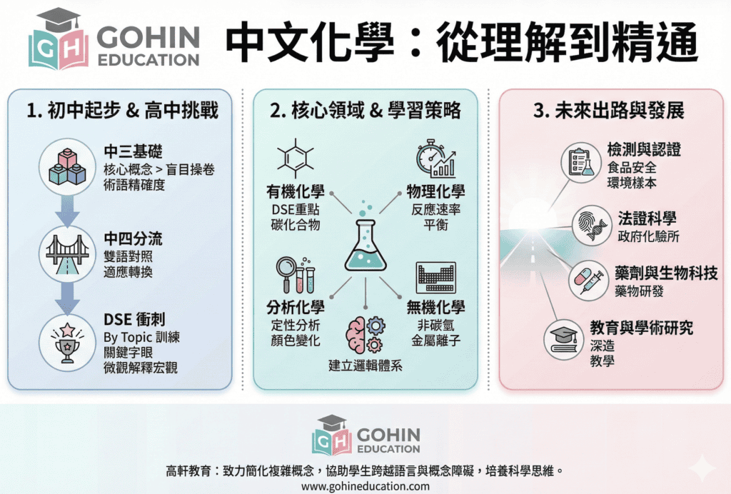在高軒教育 (Go Hin Education),我們見過無數學生因為輕視了中四的基礎,導致中五、中六時追趕得非常吃力。這篇文章將以專業角度,為大家分析如何有效地利用中四化學練習、筆記與教科書,協助同學打好根基,為未來的 DSE 作好準備。